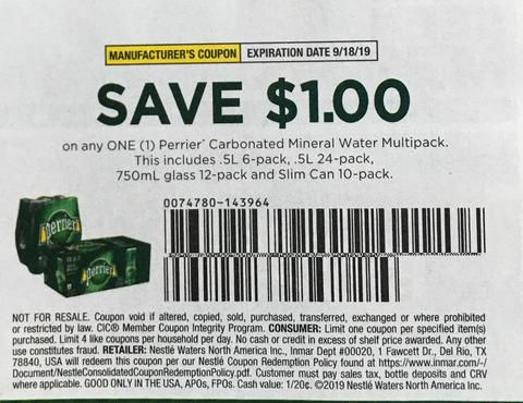 $1 OFF/1 PERRIER CARBONATED MINERAL WATER MULTIPACK EXP 9/18/19