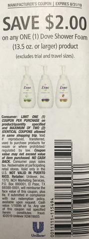 $2 OFF/1 DOVE SHOWER FOAM PRODUCT EXP 8/31/19